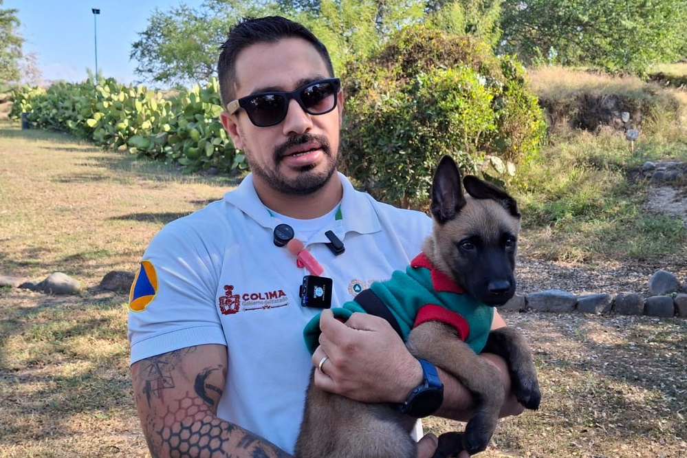 La Unidad Estatal de Protección Civil presentó al primer cachorro que se suma a sus filas como parte de un binomio canino especializado en búsqueda y rescate.