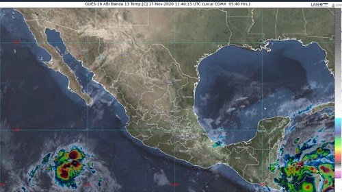 Hoy martes 17 de noviembre de 2020, el frente frío No. 13 interaccionará con la nubosidad asociada a las bandas nubosas del huracán "Iota", originando lluvias puntuales torrenciales en zonas de Veracruz (sur y zona montañosa central) y Oaxaca (norte),