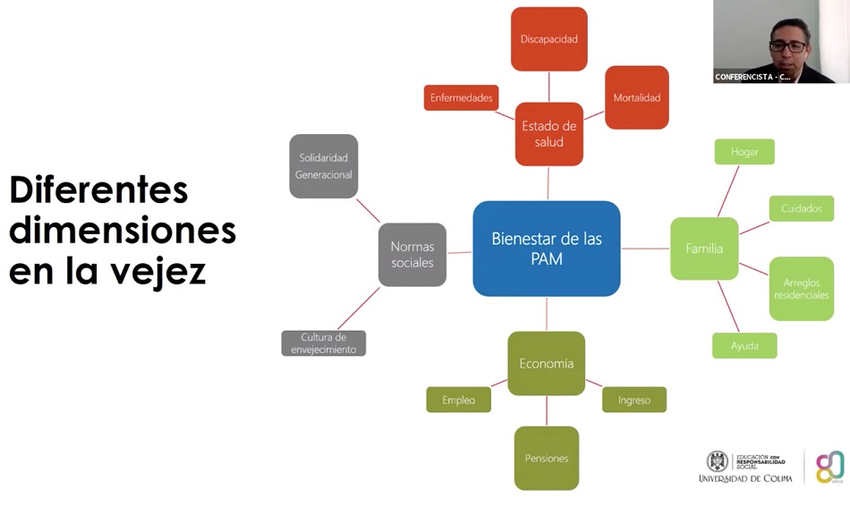 Dicho conocimiento, agregó, “requiere conocer lo que implica todo esto para su bienestar en términos de cuidados, gastos en salud, relaciones familiares, empleo, y más”. Lo anterior lo dijo durante la videoconferencia “Enfoque integrador para el estudio de la salud en población envejecida”, que dictó en el marco del IV Congreso Internacional de Envejecimiento en América Latina “Teorías, Metodologías y Prácticas de la Gerontología”, que se efectuó de manera virtual hace unos días.