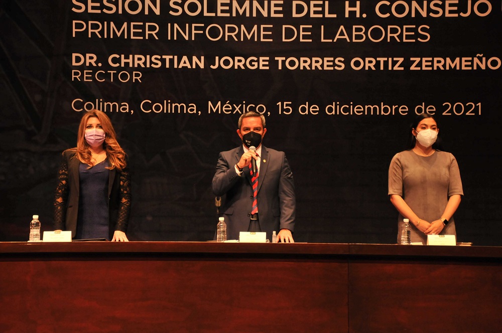 Por último, tras destacar y reconocer el gran papel jugado por las y los docentes para no detener el proceso de enseñanza-aprendizaje, aseguró que “sólo soy el portavoz del trabajo de miles de mujeres y hombres que hacen de la Universidad de Colima una gran institución. Estoy seguro de que, en el cierre de este año coyuntural, los resultados de la Universidad demuestran que es posible construir alternativas para sostener procesos de crecimiento, a pesar de las dificultades”.