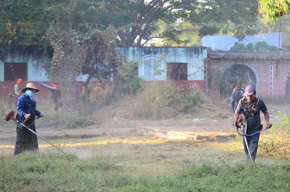Este fin de semana, la brigada de Talacheando Contigo trabajó en la zona de tolerancia, espacio que tenía más de cinco años que no se podaban los árboles y zonas verdes del jardín, por lo que por motivos de seguridad se le dio mantenimiento a esta zona.