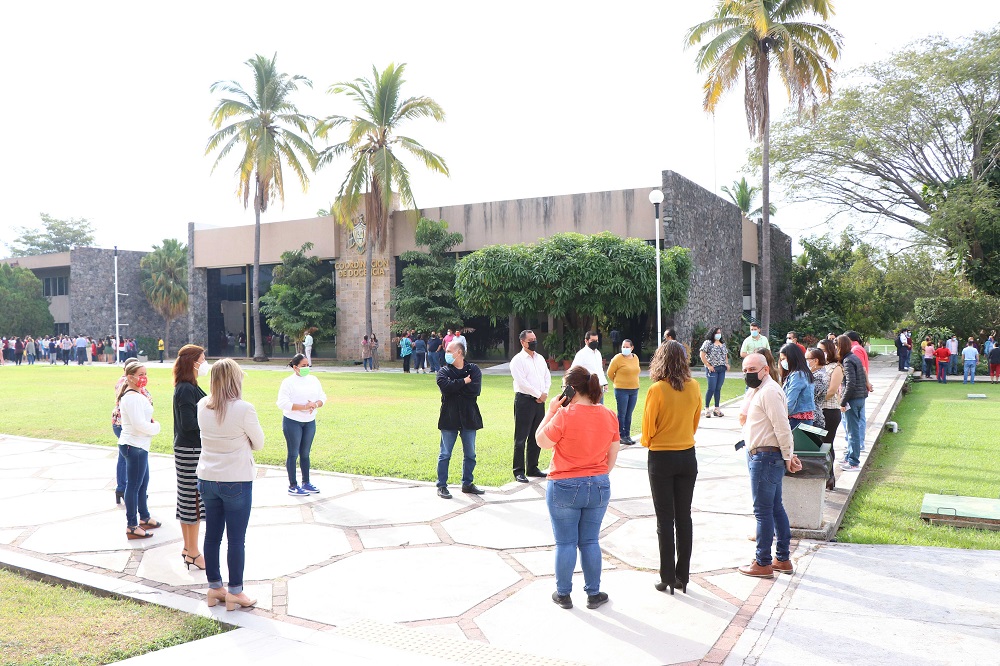 Este viernes, la Universidad de Colima se sumó al macrosimulacro estatal que se realizó a las diez de la mañana, para conmemorar los 19 años del sismo que afectó a nuestro estado, para seguir practicando y mejorando la evacuación segura de aulas y oficinas y sobre todo para fomentar la cultura de la protección civil.
