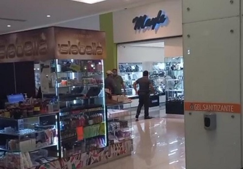 De acuerdo a los primeros reportes extraoficiales, dos sujetos armados, vestidos de negro, irrumpieron el negocio de joyería “Mayle” ubicado al interior de la plaza comercial, amenazando a los trabajadores a entregarles mercancía.