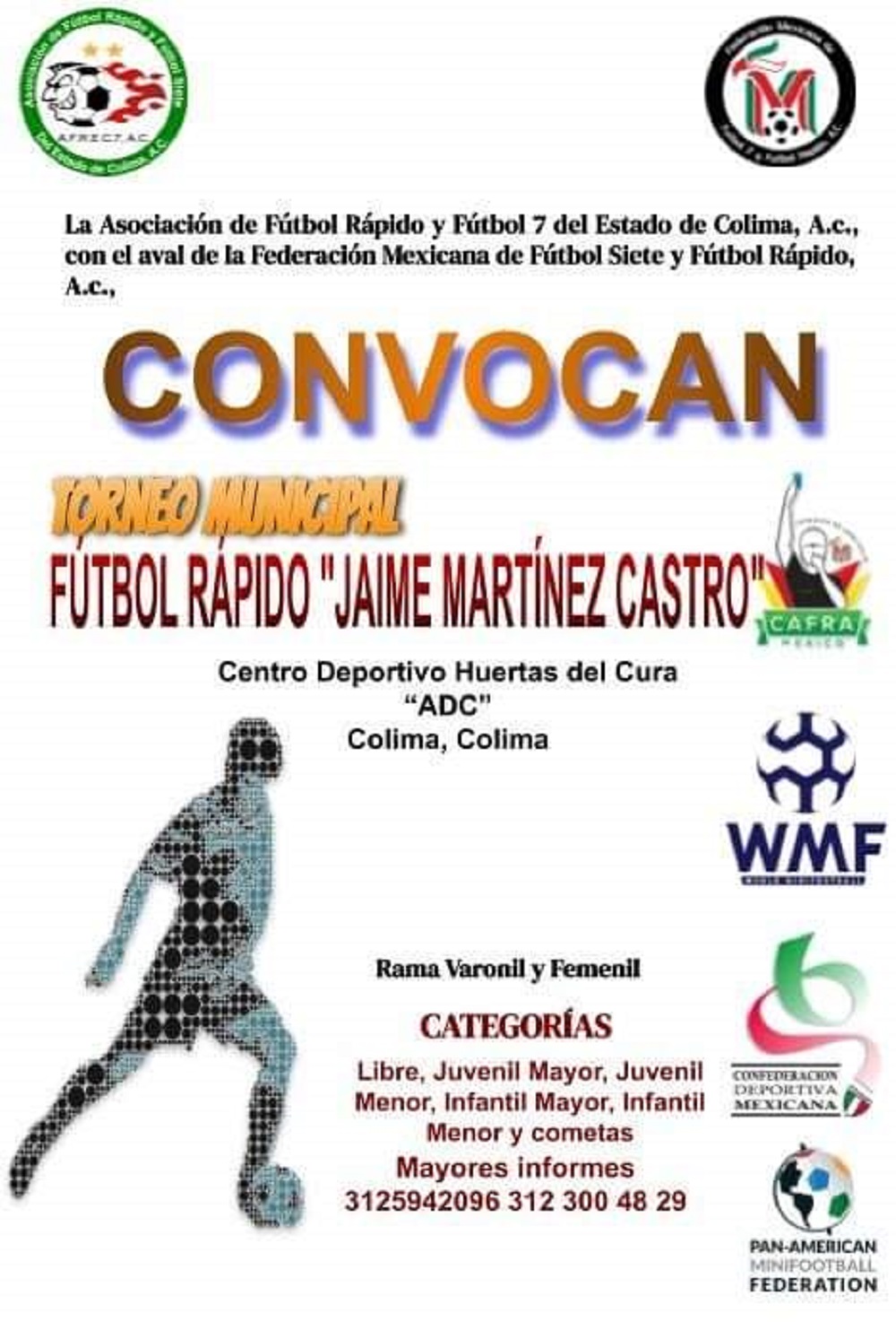Harán un homenaje al Médico Veterinario Zootecnista MVZ Jaime Martínez Castro pionero del fútbol rápido recientemente fallecido, con un Torneo Municipal que llevará su nombre y se estará realizando en el Centro Deportivo Huertas del Cura de la Ciudad de Colima.
