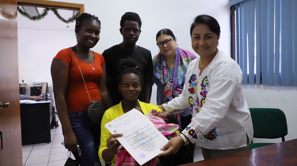 Como parte de la ayuda humanitaria que brindó el ayuntamiento de Manzanillo a personas provenientes de otras latitudes como de Centroamérica, desde el año pasado a través de una gran caravana migratoria; a través del Registro Civil de la comuna porteña, este mes de abril se registró a la primer bebé (Isabel) nacida en el municipio, hija de mamá y papá de origen haitiano.