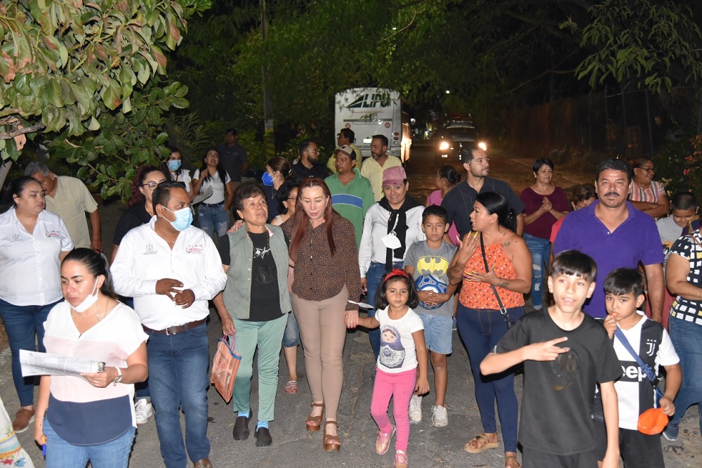 Villa de Álvarez, Col. Luminarias descompuestas, ramas de árboles que impiden aprovechar la iluminación del alumbrado público y automóviles abandonados, son algunos de los problemas de la colonia Alfredo V. Bonfil, detectados en la marcha exploratoria de seguridad, que junto con vecinas y vecinos encabezó la Alcaldesa de Villa de Álvarez, Tey Gutiérrez Andrade.