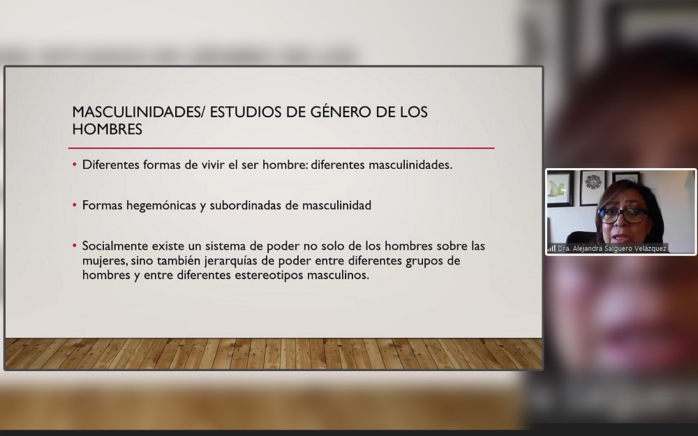 Alejandra Salguero Velázquez, académica del FES-Iztacala (UNAM) impartió la conferencia virtual “Experiencia en la investigación sobre los estudios de género de los hombres”, hace unos días, en el marco del I Coloquio de Investigación “Estudios de género, sociedad y cultura”, organizado por la Facultad de Letras y Comunicación.