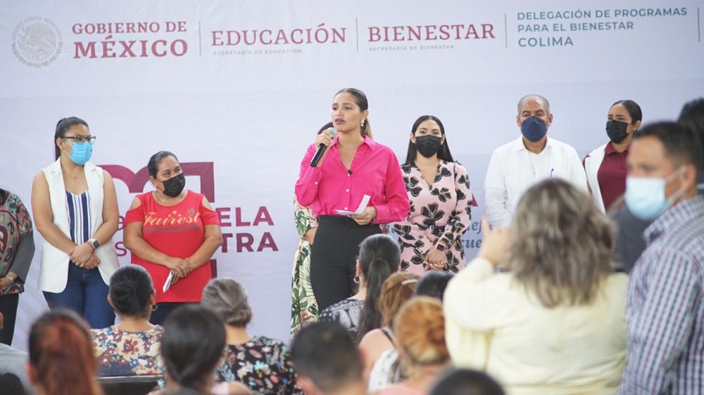 Acompañada por la gobernadora, Indira Vizcaíno Silva, la funcionaria federal encabezó el acto de entrega de las 35 primeras tarjetas de Banco del Bienestar, al mismo número de presidentes de Comités Escolares de Administración Participativa de escuelas localizadas en los municipios de Colima, Comala, Coquimatlán, Cuauhtémoc, Ixtlahuacán y Villa de Álvarez, que en conjunto ejercerán 9 millones 850 mil pesos.