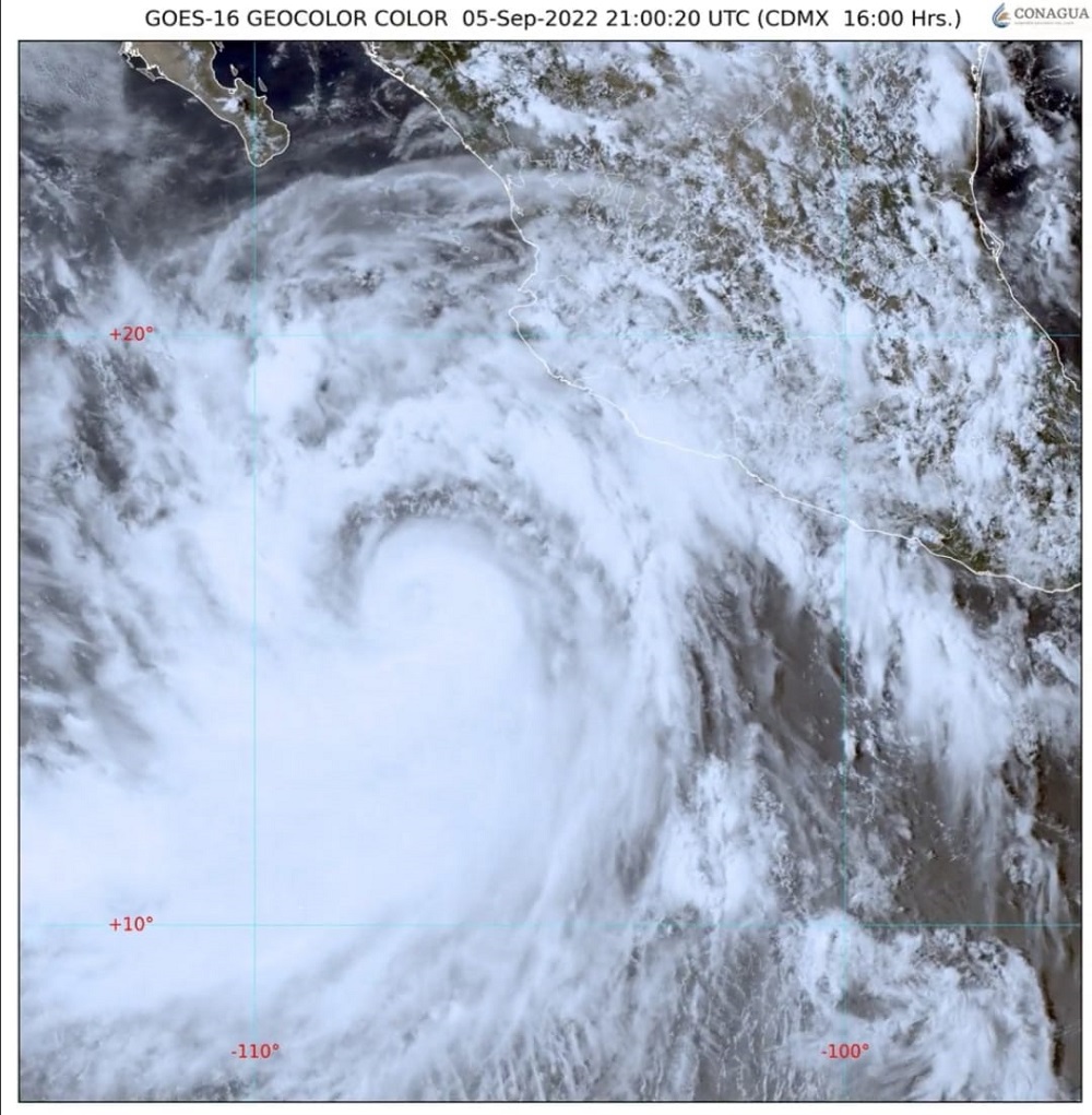 *Durante la tarde de este lunes y madrugada del martes, sus bandas nubosas provocarán lluvias torrenciales en Colima, Michoacán, Nayarit y Sinaloa e intensas en Jalisco