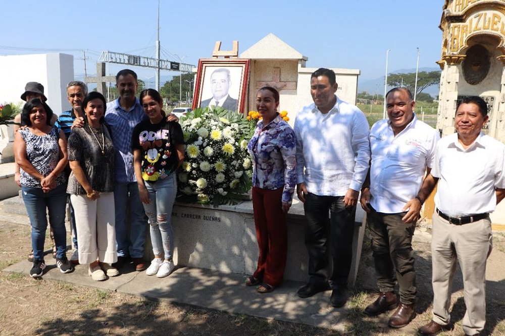 Villa de Álvarez, Col. Acompañada por el Síndico José Santos Dolores, el Regidor Roberto Rolón, el Secretario José Alfredo Chávez González así como por funcionarios y funcionarias municipales, este Día de los Fieles Difuntos, la Presidenta Municipal Tey Gutiérrez acudió al panteón municipal a las tumbas donde descansan los restos de los expresidentes municipales, Alfonso Cabrera Fuentes, Ramón Cruz Cabrera, Martha Dueñas González, Jorge Cárdenas Cortés, Alfonso Rolón Michel y J. Inés Ramírez Cobián, también a los espacios donde están José María Cruz Inda, impulsor de los Festejos Charrotaurinos; J. Guadalupe Anguiano, "El Cabecas", primer sepulturero del Panteón Municipal; Desiderio Contreras "El Pajarito", mayordomo por muchos años de La Petatera; Rigoberto García García, "El Porrillas", payaso ícono de las Fiestas Charrotaurinas, y el Profr. Rafael Heredia Velasco, pintor y maestro de grandes artistas.