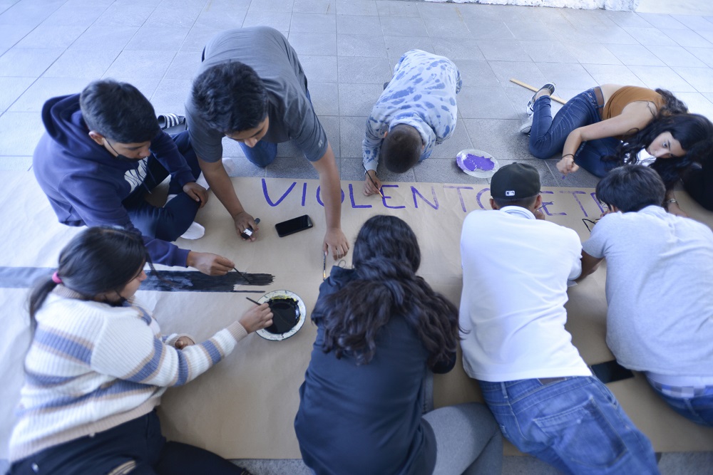 Estudiantes del Bachillerato 32, que se ubica en Suchitlán, participaron en una jornada cuyo objetivo fue concientizar a las y los jóvenes sobre la violencia de género, mediante un intenso programa de actividades como charlas, talleres, dibujos y carteles de gran formato.