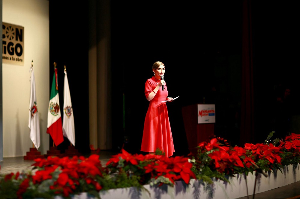 Al término de su mensaje, en el cual pidió un aplauso a las familias de las y los trabajadores del municipio por su esfuerzo incansable, Margarita Moreno también dirigió un mensaje a sus hijos, hija y esposo, quienes la acompañaron también a lo largo de este año de intenso trabajo por el municipio.