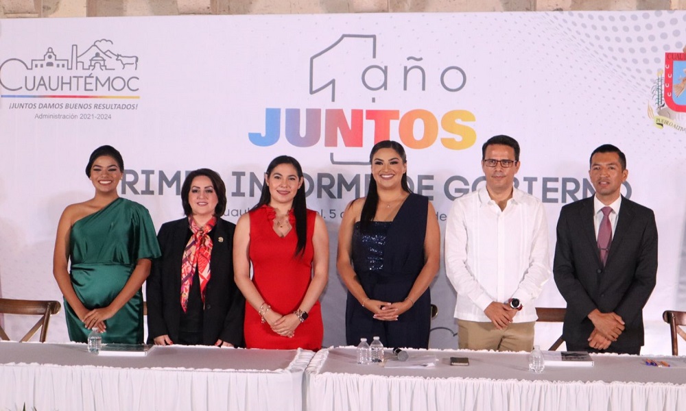 Como testigo de honor, la gobernadora del Estado, Indira Vizcaíno Silva, reconoció los logros alcanzados por la administración municipal, “gracias al esfuerzo y dedicación de un gran equipo que trabaja por Cuauhtémoc con entusiasmo, disciplina y dinamismo”.