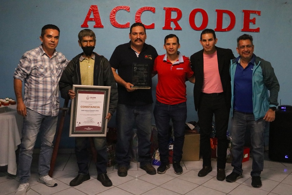 Alejandro Rodríguez Alvarado, director general del Instituto Colimense del Deporte, (Incode), acompañado por el jefe del departamento de Educación Física de la Secretaría de Educación y Cultura del Gobierno del Estado de Colima, Carlos Alberto Chávez López, y el presidente de la Asociación Colimense de Cronistas Deportivos (Accrode), Óscar Manuel Cortés Evangelista, encabezó la posada organizada por esta agrupación, donde se reconoció a cronistas colimenses por su trayectoria laboral.