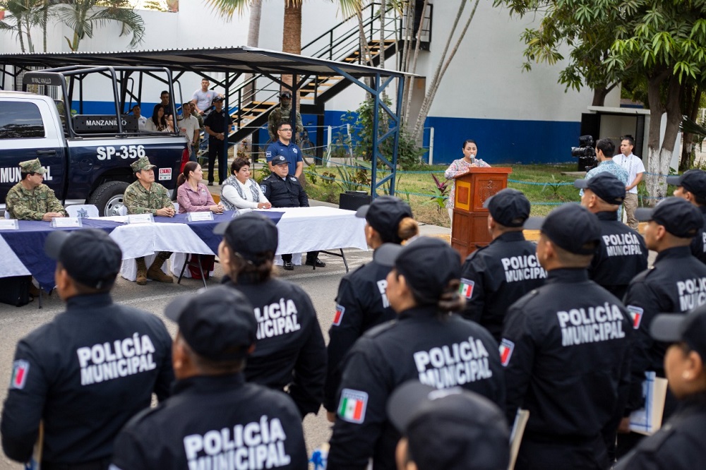 Manzanillo, Col. Con el propósito de fortalecer, renovar y profesionalizar el cuerpo policial, así como reconocer la vocación, los buenos resultados y la preparación del personal promovido, la presidenta de Manzanillo, Griselda Martínez, encabezó la ceremonia de ascensos a grado inmediato superior para 27 oficiales de policía.