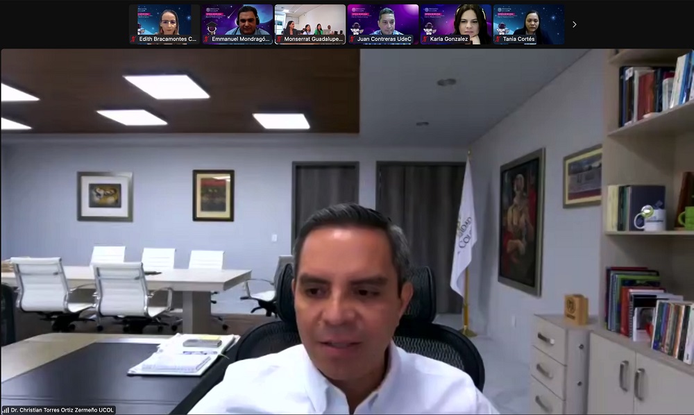 El rector de la Universidad de Colima, Christian Jorge Torres Ortiz Zermeño presidió este miércoles, de manera virtual, la entrega de Diplomas y Constancias del Diplomado Agentes TIC: “Competencias para el Trabajo Digital”, que organizaron la Dirección General de Recursos Humanos, el Centro Universitario para el Bienestar Integral y la Dirección General de Integración de las Tecnologías de Información.