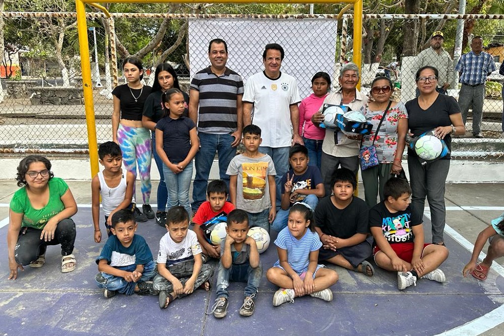 *Momentos emotivos se vivieron cuando recibieron los niños balones de fútbol para la cancha recién rehabilitada, y donaron un casco, chaleco y botas de trabajo para un joven que todos los días barre de manera gratuita el jardín