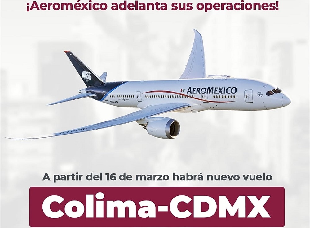 Gracias a las gestiones de la gobernadora Indira Vizcaíno Silva, la empresa Aeroméxico adelantará al 16 de marzo el arranque de su ruta Colima con destino a la Ciudad de México.