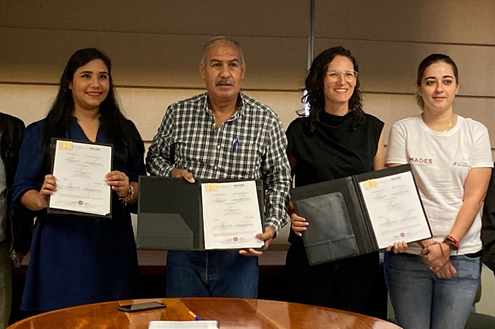 La Secretaría de Educación y Cultura y el Instituto para el Medio Ambiente y Desarrollo Sustentable (Imades) firmaron un convenio de colaboración para establecer mecanismos y desarrollar actividades a favor del medio ambiente, que fue signado por el secretario Adolfo Núñez González, la subsecretaria de Educación, María del Rosario Silva Verduzco, la directora general de Imades, Angélica Lizeth Jiménez Hernández; la directora de Proyectos Estratégicos y Ambientales, Laura Villaseñor y el director de Desarrollo de la Gestión Educativa, César Calderón Briceño.