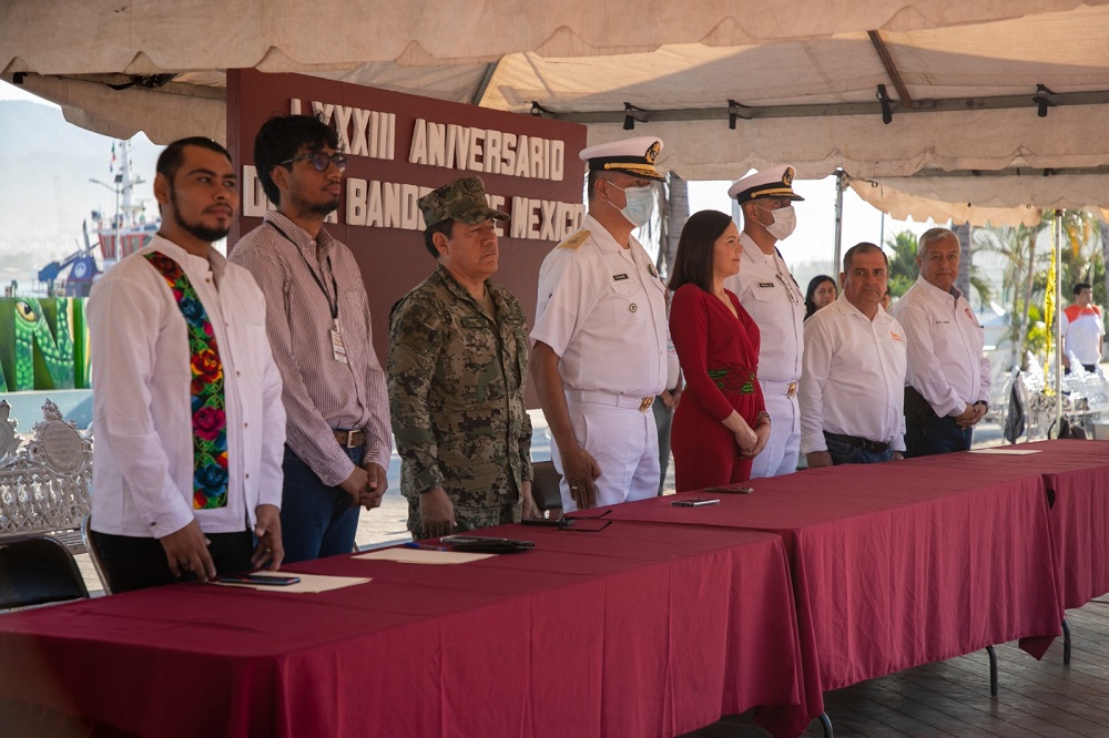 Con una ceremonia cívica realizada en la Plaza Juárez encabezada por la secretaria del Ayuntamiento de Manzanillo, Martha Zepeda del Toro, instituciones civiles y militares hicieron los honores al lábaro patrio teniendo como marco la gran Bandera de México instalada en la gran asta de dicha plaza pública.