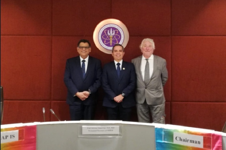 En reunión privada que se llevó a cabo este viernes en instalaciones del Ministerio de Educación Superior, Ciencia, Investigación e Innovación, con sede en Bangkok, Tailandia, el rector de la Universidad de Colima, Dr.Christian Jorge Torres Ortiz Zermeño presentó su plan de trabajo como presidente de la University Mobility in Asia and the Pacific (UMAP), ante el Dr. Ajay Patel, Secretario General de UMAP y rector del Vancouver Community College, y el Dr. Randall Martin, secretario adjunto de UMAP y director ejecutivo del Consejo de British Columbia para la Educación Internacional.