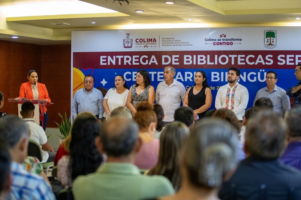 La gobernadora Indira Vizcaíno Silva, al entregar ejemplares de la colección ‘Biblioteca SEP Centenaria Bilingüe’ a escuelas y bibliotecas públicas del estado de Colima, expresó que el Gobierno de México que encabeza el presidente Andrés Manuel López Obrador, ha puesto énfasis en fortalecer la educación de niñas, niños y adolescentes en general y de manera particular, la importancia de las bibliotecas y el uso de las mismas, además de que reconoce la importancia de reivindicar las indígenas y nuestros orígenes.