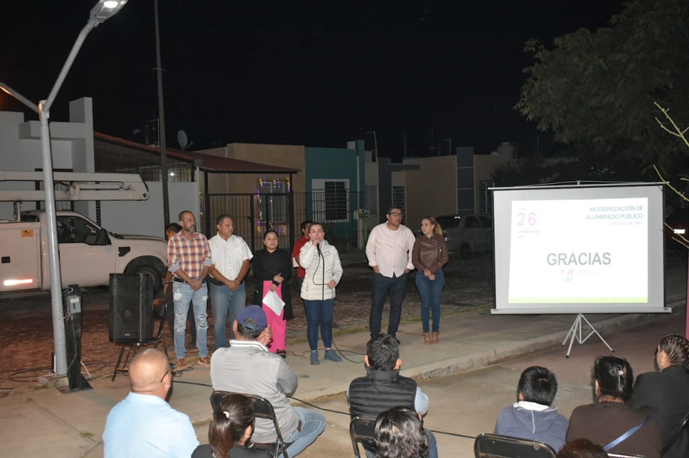 En la colonia Los Robles, la Alcaldesa entregó a vecinas y vecinos y puso en operación 22 luminarias LED en distintas vialidades, en sustitución de las antiguas lámparas de vapor de sodio, y fueron colocadas cuatro luminarias nuevas en el área verde.