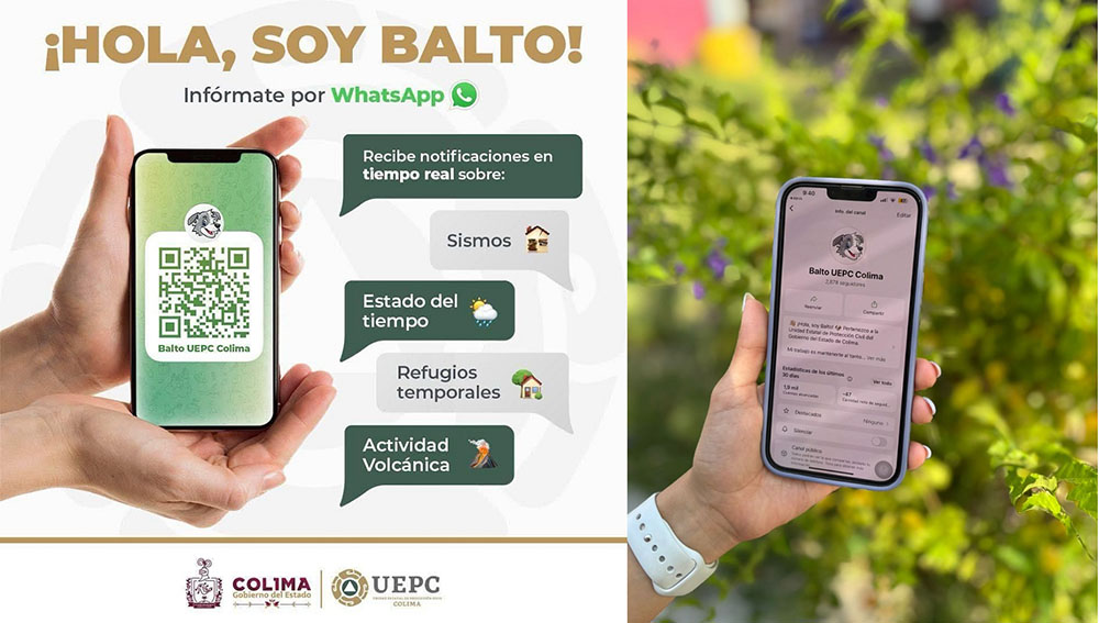 La dependencia estatal recuerda que todas las personas que deseen suscribirse al canal de noticias de ‘Balto UEPC Colima’ pueden hacerlo de manera gratuita y ágil en el siguiente enlace https://whatsapp.com/channel/0029VafzepNGZNCr9Yl4Ut2F y es importante activar las notificaciones para recibir las noticias en tiempo real. #proteccióncivilsomostodasytodos.