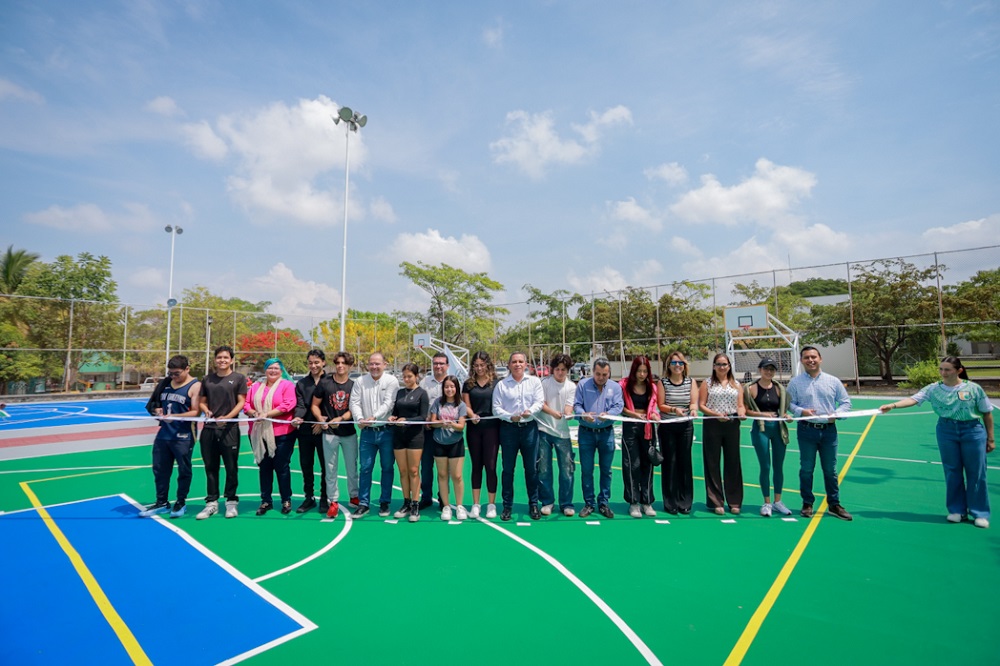 Ante estudiantes, personal directivo, docente y administrativo del campus Villa de Álvarez, el rector de la Universidad de Colima, Christian Jorge Torres Ortiz Zermeño, hizo entrega oficial de la rehabilitación de dos canchas de usos múltiples, así como de material deportivo. Lo acompañaron varios de sus funcionarias y funcionarios principales.