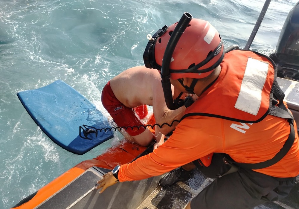 Una vez que el personal naval se aproximó al área del incidente, se localizó a la persona y se iniciaron las maniobras de rescate. Una vez estabilizado a bordo de la embarcación, fue trasladado a las instalaciones de la Sexta Región Naval, donde recibió valoración médica.