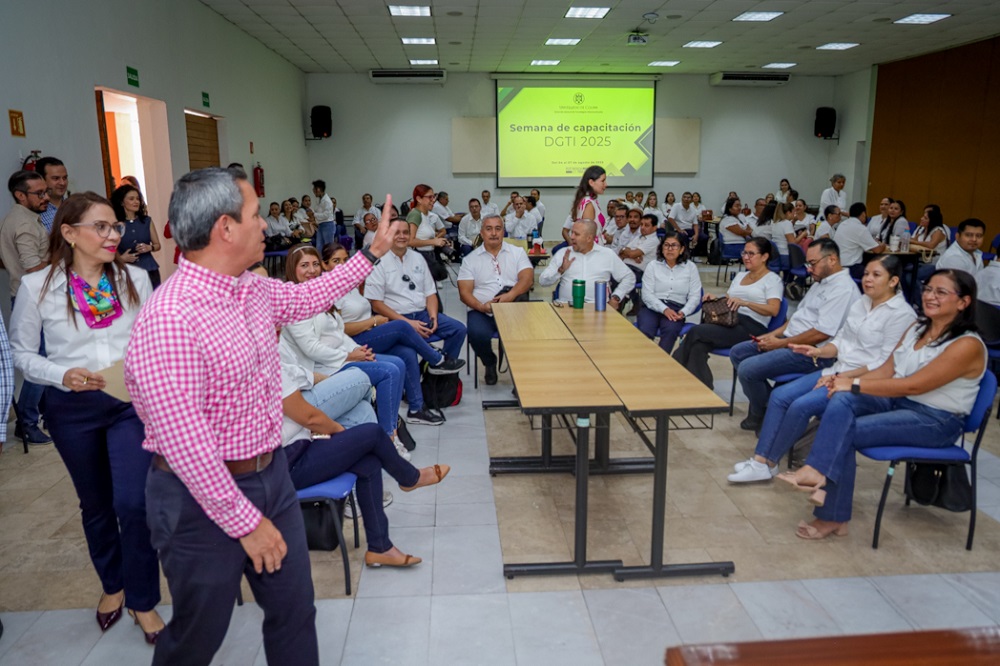 Con el propósito de fortalecer las habilidades y conocimientos del personal adscrito a la Dirección General de Tecnologías Informacionales, este miércoles el rector de la Universidad de Colima, Christian Torres Ortiz Zermeño, inauguró el curso-taller Tecnologías Informacionales: Personas que Transforman Espacios.