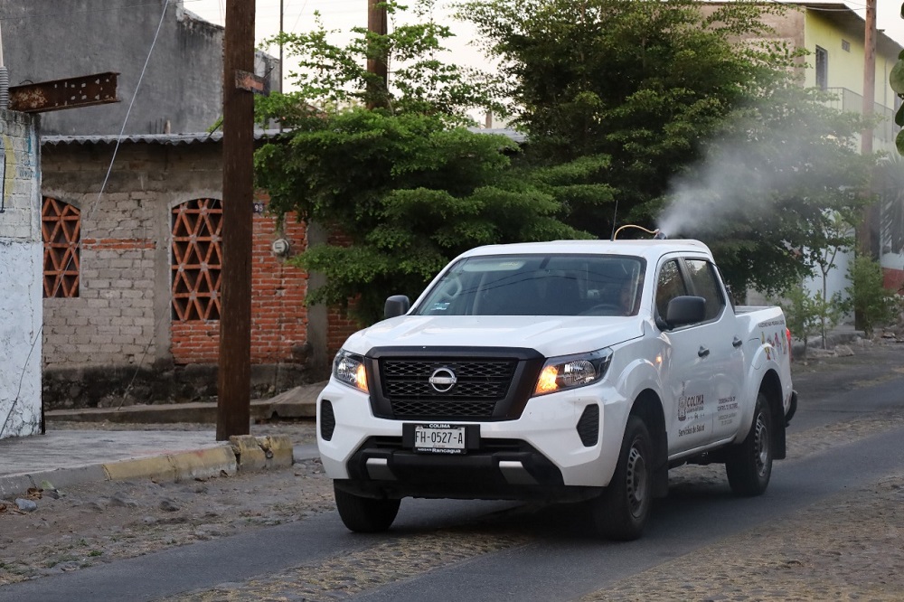 Personal de Vectores fumigará durante esta semana con unidades pesadas en los municipios de Colima, Coquimatlán, Manzanillo, Tecomán y Villa de Álvarez, de manera focalizada en colonias, fraccionamientos y comunidades donde se ha detectado mayor presencia del Aedes aegypti.