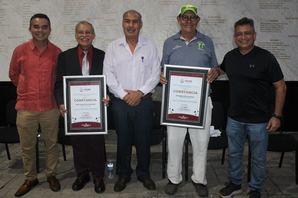 En representación de la gobernadora Indira Vizcaíno Silva, el secretario de Educación y Cultura del Gobierno del Estado de Colima, Adolfo Núñez González develó los nombres de los ex futbolistas José Ramón Cano Anguiano y Rigoberto Reyes Zepeda, los cuales fueron inscritos con letras doradas en el Muro de Honor del Deporte Colimense.
