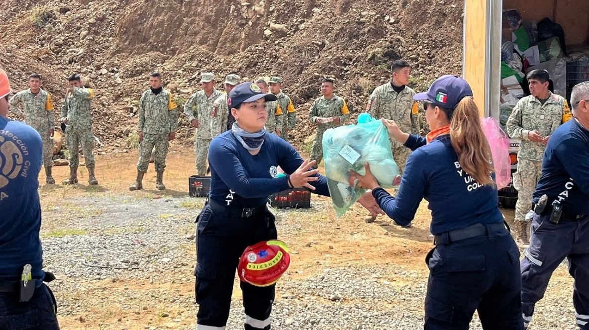 En una jornada marcada por la solidaridad y el trabajo conjunto, en ese mismo punto, el grupo de Búsqueda y Rescate, conformado por personal de la Unidad Estatal de Protección Civil (UEPC) del Gobierno del Estado de Colima y Protección Civil de Manzanillo, realizan labores de búsqueda, rescate y entrega de víveres, reforzando las acciones humanitarias en coordinación con autoridades federales, estatales y municipales.
