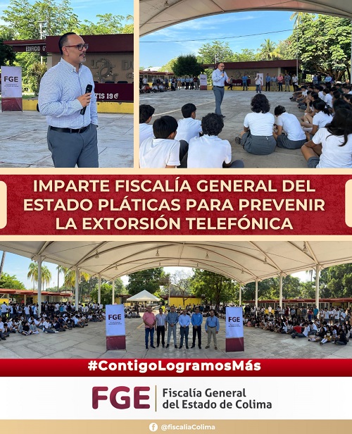 Esta actividad forma parte de las acciones que realiza la Fiscalía General del Estado (FGE), para informar a la juventud colimense sobre qué hacer ante una extorsión telefónica o secuestro virtual donde mediante pláticas informativas se interactúa con las y los alumnos que integran la institución.