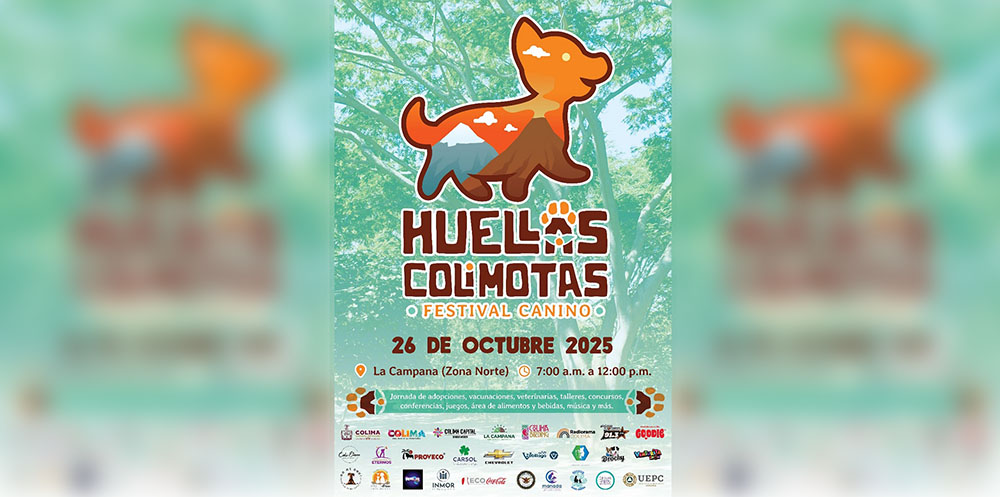 La Subsecretaría de Turismo (Subsectur) del Gobierno del Estado de Colima, con el respaldo de la estación de radio La Más Picuda 91.3 FM, invitan a participar y disfrutar del Festival Canino ‘Huellas Colimotas’, que se llevará a cabo este domingo 26 de octubre, de 7:00 de la mañana a 12:00 de la tarde, en la zona norte del Parque Ecológico La Campana, que se ubica en la zona conurbada de Colima y Villa de Álvarez.