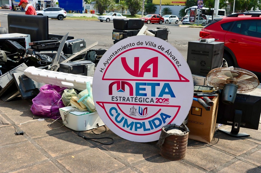 Villa de Álvarez, Col. Con la realización del Décimo Reciclón, el Ayuntamiento de Villa de Álvarez rebasó la Meta Estratégica del Programa de Gobierno del Año 2025, de realizar seis jornadas de recolección de aparatos eléctricos y electrónicos y baterías.