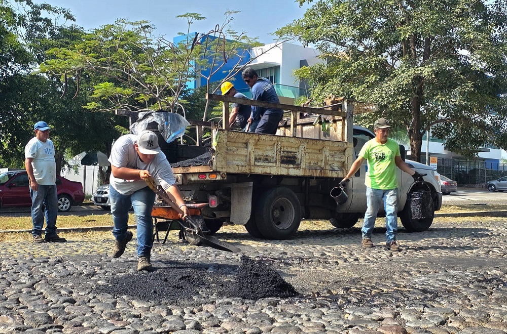 Estos trabajos de bacheo son constantes tanto en asfalto, así como en empedrado, aunque se les da prioridad a todas las vialidades que tienen mayor aforo vehícular.