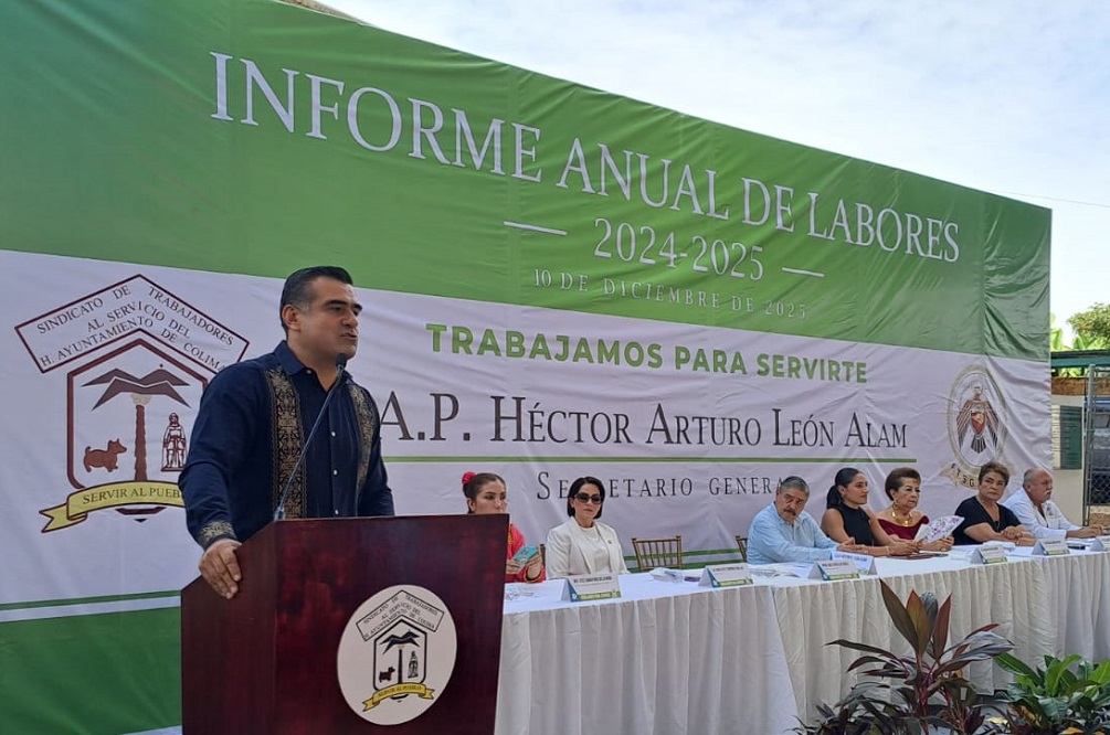 En el marco del informe anual de labores del Sindicato de Trabajadores al Servicio del Ayuntamiento de Colima, se presentó un video que resumió los principales logros alcanzados durante 2025 en beneficio de la clase trabajadora. Entre ellos destacaron el incremento salarial del 7 por ciento, el más alto del estado, y la entrega, por parte del presidente municipal Riult Rivera, de la primera etapa de regularización para diversos trabajadores que ya fueron plenamente reconocidos como sindicalizados.