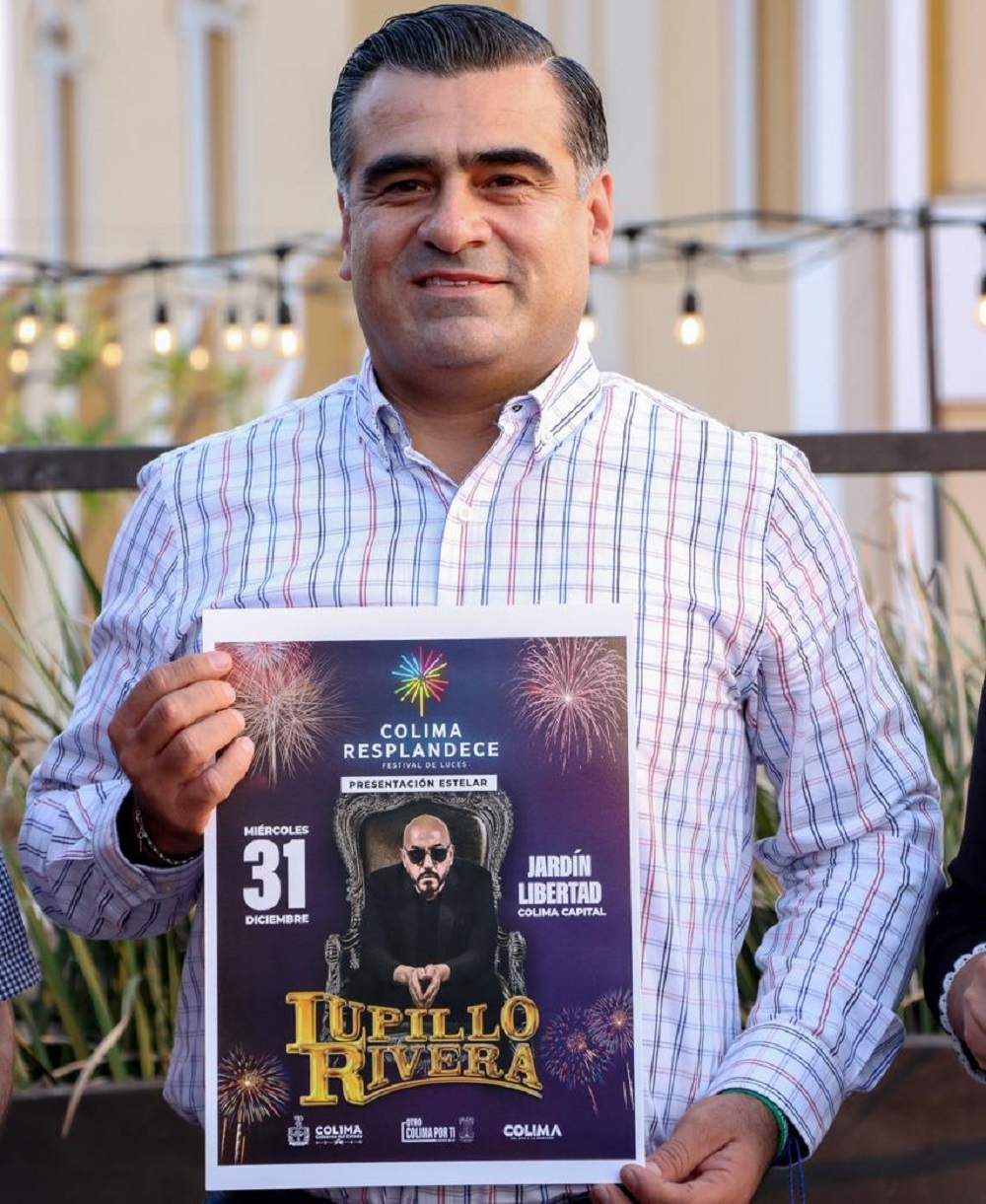 Este lunes, el presidente municipal de Colima, Riult Rivera Gutiérrez, dio a conocer que el cantante Lupillo Rivera, será el artista estelar del Festival de fin de año Colima Resplandece, con el que se dará la bienvenida al año 2026, en el centro histórico de la capital del estado.