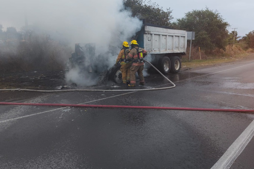 Así mismo, elementos de Bomberos Colima -Estación Oriente- acudieron a atender un incendio de camión registrado sobre la autopista Colima-Guadalajara, a la altura de la Palma Amarilla antes de llegar a El Trapiche.