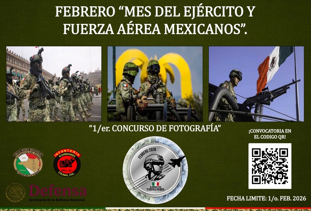 En el marco del 113 aniversario del Ejército Mexicano y 111 Aniversario de la Fuerza Aérea Mexicana y como parte de la campaña “Febrero, mes del Ejército y Fuerza Aérea Mexicanos”, la comandancia de la 20ª. Zona Militar convoca al Primer Concurso de fotografía “Captura el Espíritu de Nuestras Fuerzas Armadas”.
