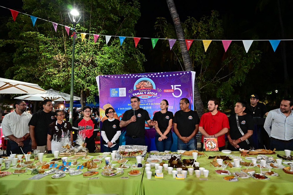 El presidente Municipal de Colima, Riult Rivera Gutiérrez, encabezó la inauguración del 15° Festival del Tamal y el Atole 2026, evento que se lleva a cabo del 31 de enero al 2 de febrero en el Jardín de San Francisco de Almoloyan, lugar donde nació esta tradicional celebración gastronómica hace ya 15 años.