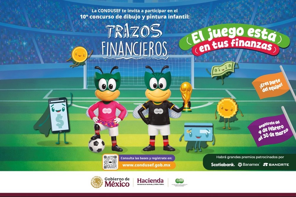 Con el objetivo de impulsar la Educación Financiera desde la infancia, en esta edición y en víspera del Mundial de Fútbol que se celebrará en nuestro país, la CONDUSEF invita a las niñas y los niños de entre 6 y 12 años de edad a participar en el concurso “Trazos Financieros, el Juego Está en Tus Finanzas”.