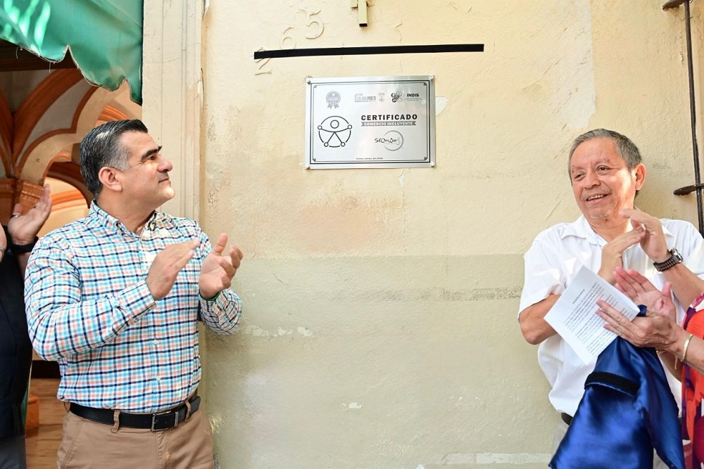 Por su parte, Patricia de la Madrid Andrade, directora del Instituto para el Desarrollo, la Inclusión y la Atención a la Discapacidad del Municipio, explicó que la certificación de comercios incluyentes forma parte del programa de gestión y adaptación del primer cuadro de la ciudad. Indicó que esta placa representa un símbolo visible del compromiso que asume la administración municipal con la inclusión, la igualdad y la dignidad de todas las personas.