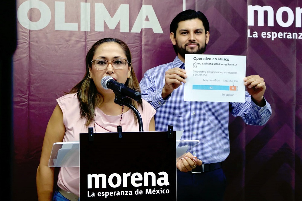 En otro tema, la presidenta de Morena Colima celebró los resultados de la última encuesta de El Financiero, que coloca a la Presidenta Sheinbaum con el 72 por ciento de aprobación a nivel nacional, así como el 82% de aprobación al reciente operativo del gobierno para detener al “Mencho”.