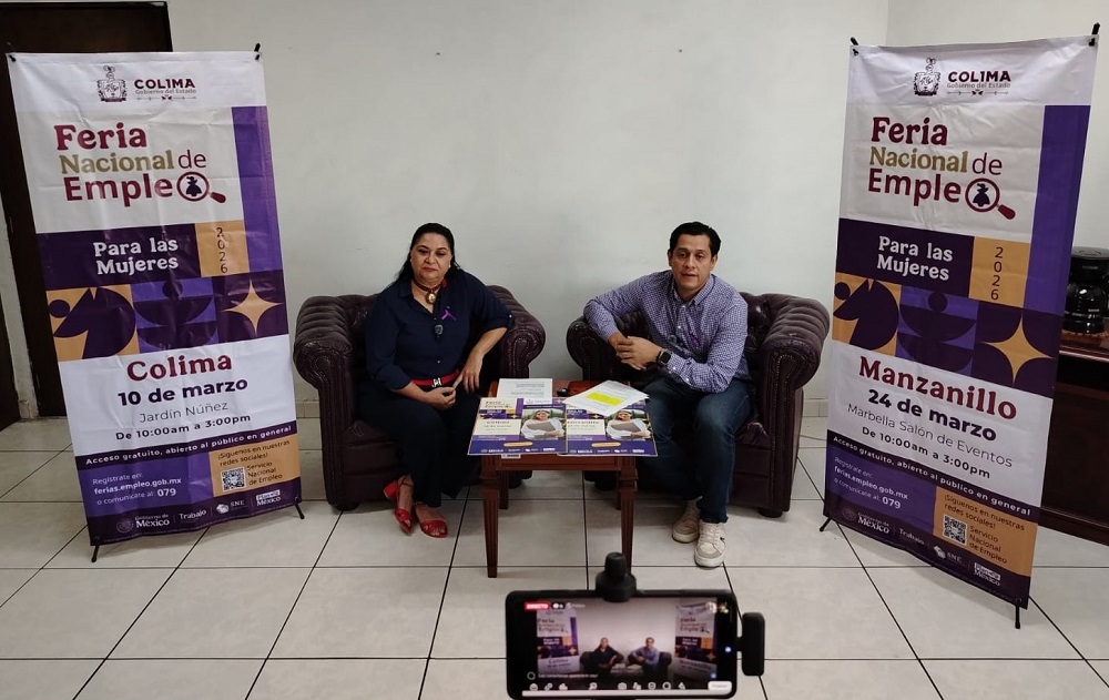 La Subsecretaría del Trabajo de Gobierno del Estado de Colima y el Servicio Nacional de Empleo (SNE) realizarán las Ferias Nacionales de Empleo para las Mujeres 2026, el 10 de marzo en el jardín Núñez de Colima y el 24 de marzo en el salón de eventos Marbella de Manzanillo, de 10:00 a 15:00 horas, donde 65 empresas ofrecerán más de 500 vacantes con contratación inmediata y sueldos de 9 mil a 35 mil pesos mensuales; la convocatoria es para todas las personas interesadas en postularse a una vacante.