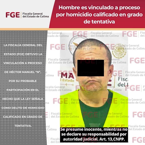 La Fiscalía General del Estado (FGE) obtuvo la vinculación a proceso de Héctor Manuel “N”, por su probable participación en el hecho que la ley señala como delito de homicidio calificado en grado de tentativa.