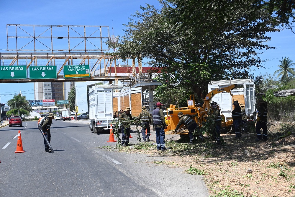 Manzanillo, Col. Como una medida preventiva para garantizar la seguridad de los peatones y con el objetivo de evitar accidentes debido a la maleza que bordea el bulevar en el tramo de la Laguna del Valle de las Garzas al crucero de Las Brisas, brigadas del área de Ecología de la Administración del Sistema Portuario Nacional (ASIPONA) Manzanillo realizaron, este sábado 11 de abril, trabajos de desmonte, poda y limpieza en ese trayecto.