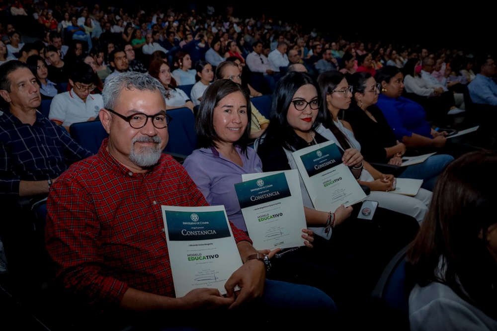 Resaltó que el modelo tiene una visión planteada hasta el año 2050, por lo que pidió la participación activa y convencida de todas y todos. “Éste no es un logro de rector, es un logro de la Universidad de Colima, que es posible gracias al apoyo de todos y todas quienes están aquí y de miles más que participaron en este proceso”. En ese sentido, advirtió: “El esfuerzo que hemos realizado no va a servir de mucho si los que estamos aquí, si el docente que está en el aula, si el directivo que está en una oficina no conoce el modelo educativo. Por ello les pediría, en un acto de responsabilidad, que se involucren y lo conozcan para poderlo implementar”.